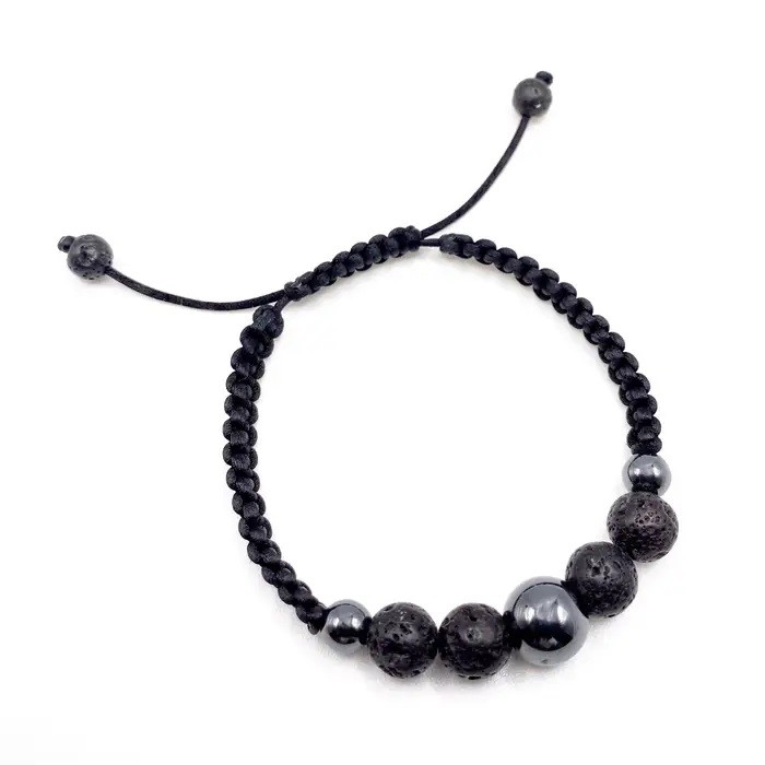 Bracelet fait à la main de pierres naturelles. Parfait pour diffuser des huiles essentielles grâce aux pierres volcaniques.