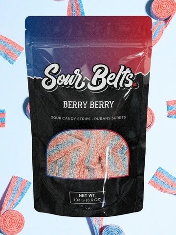 Contient 1 sachet (1 x 100g) de Sour Belts à la Berry Berry