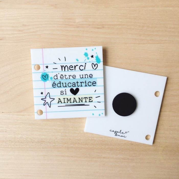 Dimension : 6x6 cm l'aimant est en acrylique Design minimaliste style feuille lignée avec phrase symbolique. Dire merci à l'enseignant(e) de l'enfant avec ce joli mémo aimanté. *À noter que ceci est un petit aimant décoratif. N'est pas conçu pour supporter une lourde charge.