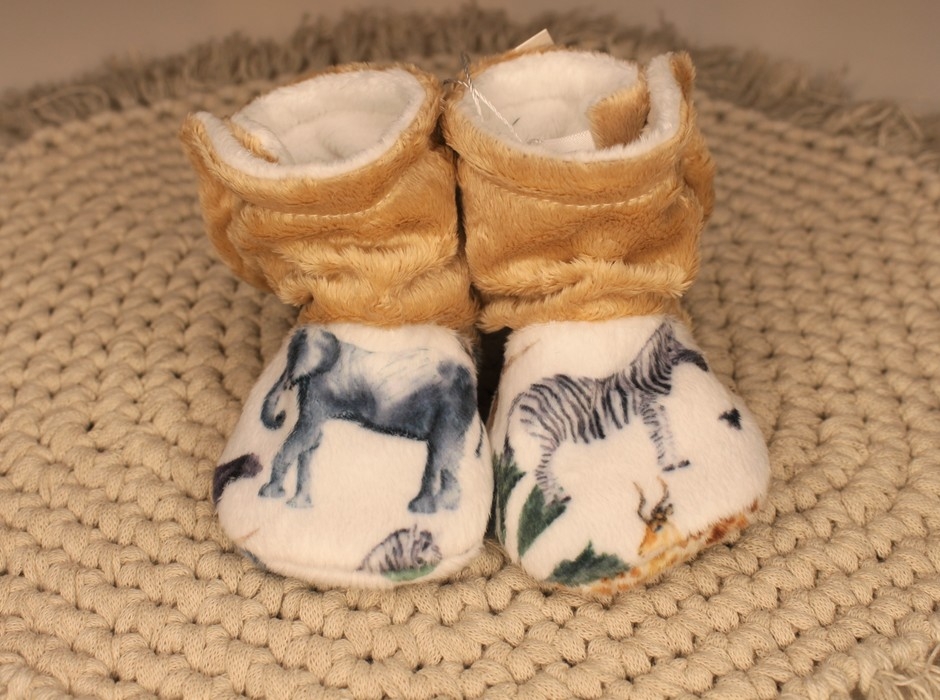 Vous avez 2 degrés d’ajustement aux chevilles grâce au 2 boutons pressions et pour les tailles 6-12 et + semelles antidérapantes s’y ajoute.