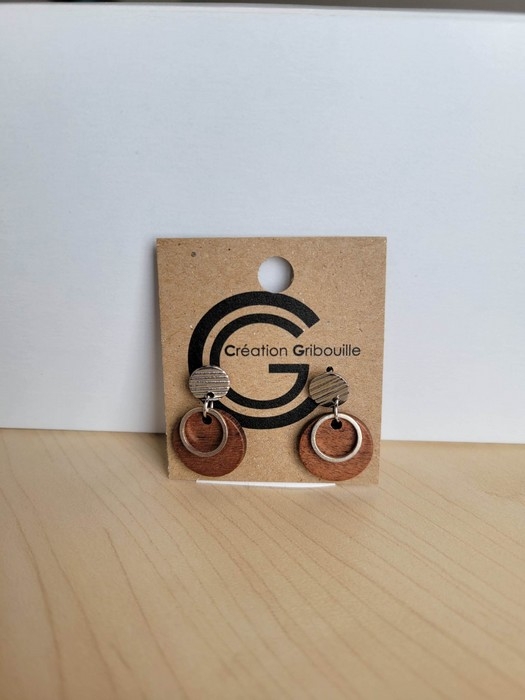 Boucles d'oreilles ronde - bois et argent
