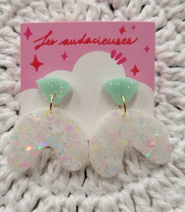 Boucles d'oreilles coulées à la main, en résine époxy et confettis.