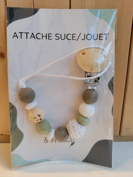 Un enfant ne doit jamais être laissé sans surveillance avec une attache suce/ne jamais laisser un enfant dormir avec. Vérifiez soigneusement l'attache avant chacune des utilisations, en cas de bris, jetez-la immédiatement ou contactez-moi. Seules les perles peuvent être machouillées, la pince doit toujours être fixée sur le vêtement de l'enfant.